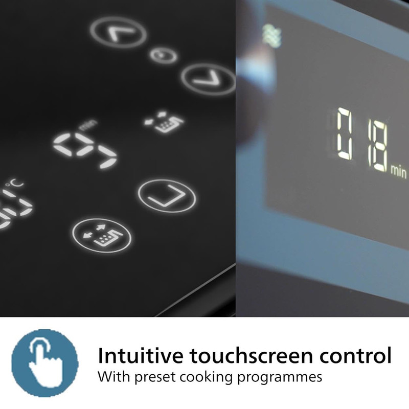 پنل لمسی دیجیتال، دسترسی به ۸ برنامه پخت آماده (سیبزمینی، مرغ، گوشت، ماهی، سبزیجات، کیک، گرمکردن مجدد و…)،