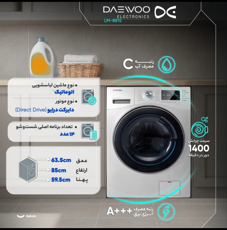 ماشین لباسشویی اتوماتیک 8 کیلویی دوو مدل LM881W