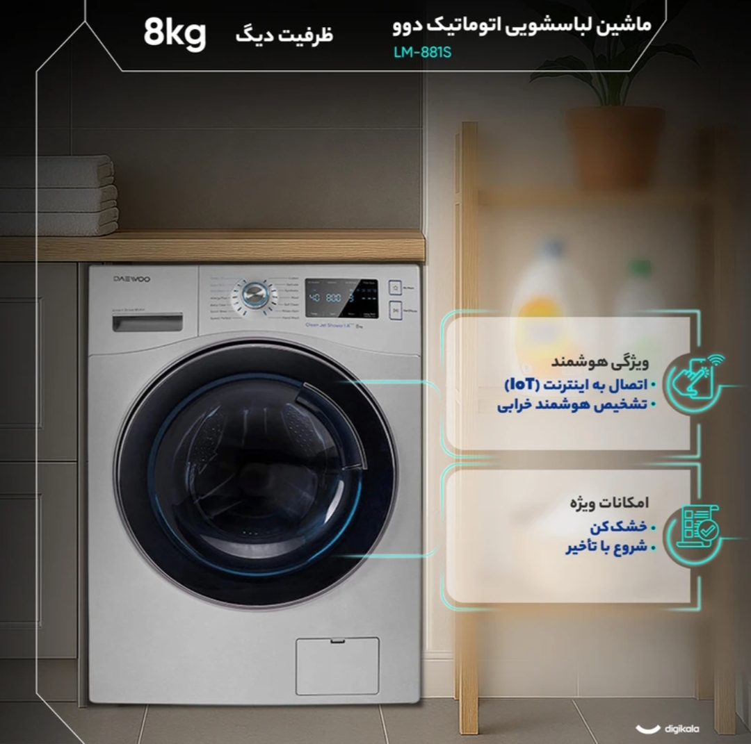 ماشین لباسشویی اتوماتیک 8 کیلویی دوو مدل LM881W