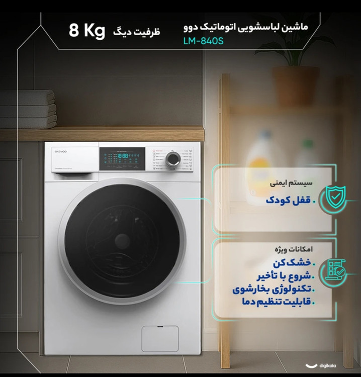 بررسی ماشین لباسشویی دوو مدل LM-840S ظرفیت 8 کیلوگرم